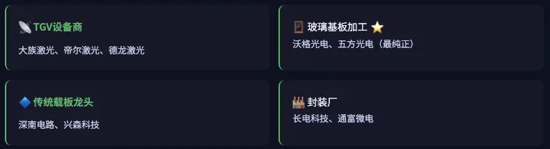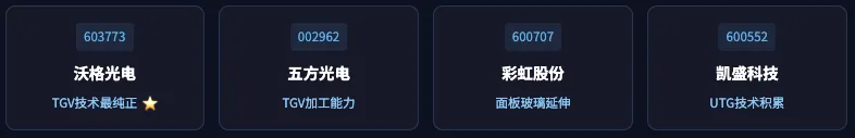 这是整个产业链价值量最高、技术壁垒最强的环节。沃格光电是目前A股中TGV技术积累最深的企业。