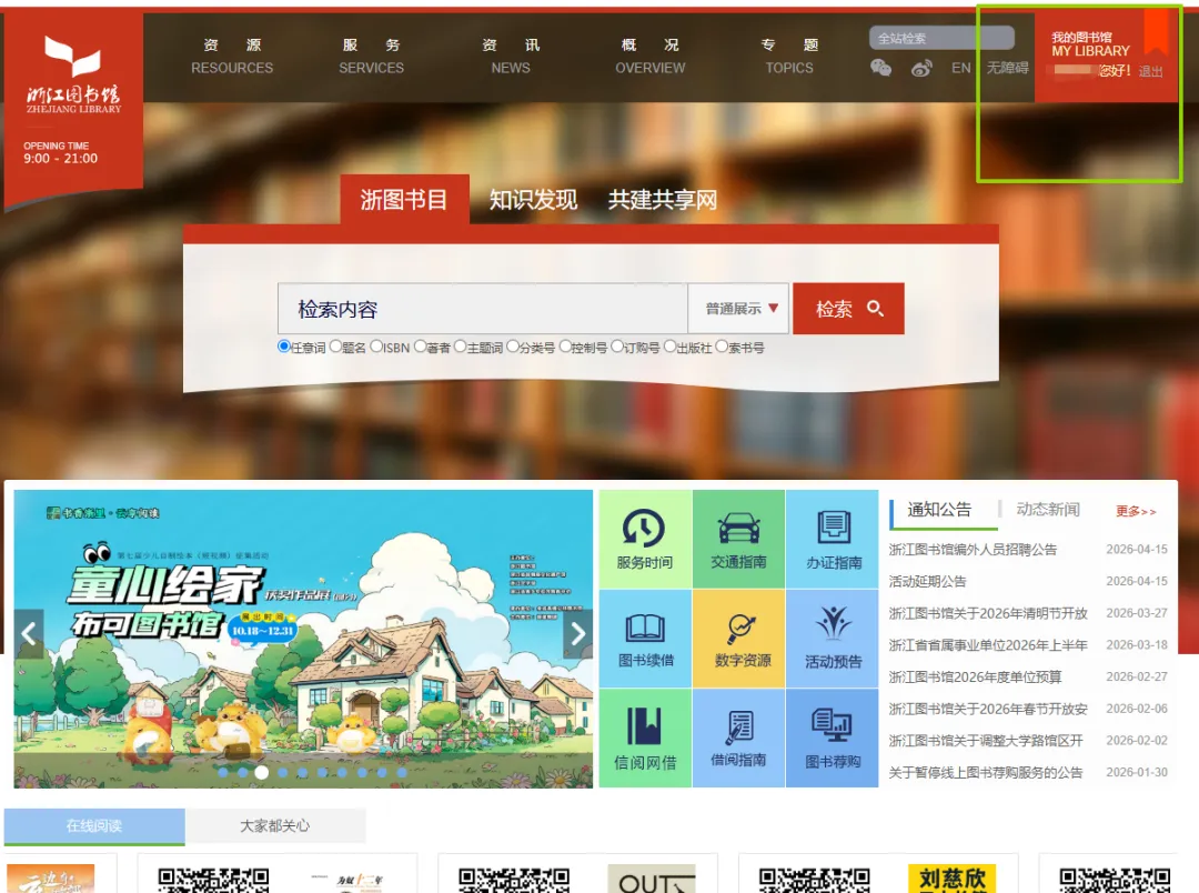 1、打开电脑,搜索“浙江省图书馆”或直接访问其官网 https://www.zjlib.cn/ 在右上角输入读者证号和密码登录账号。