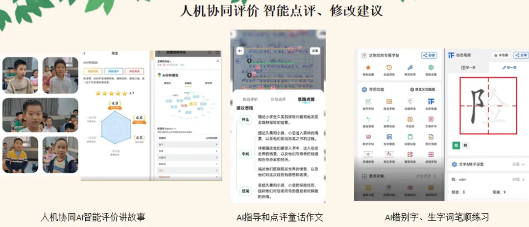 AI批改童话作文人机协同评价:这一环节利用AI技术进行实时批改,旨在提高评价的即时性和多维度全面评价,提高学习效率,学生快速的掌握写作技巧并纠正他们的错误。为每位学生提供定制化的学习资源和指导,确保每个学生都能按照自己的节奏和兴趣点进行学习。