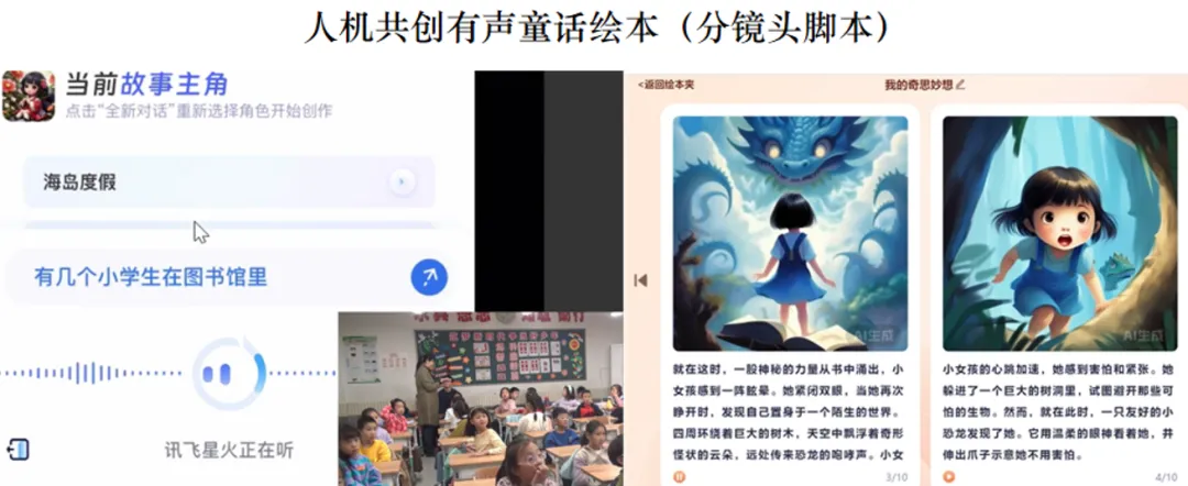 人机共创童话有声绘本:学生和人工智能进行绘本共创,学生描述童话故事,人工智能帮助润色和扩写,这个活动结合了人工智能与创意艺术,激发学生的创新思维,同时增强他们对故事结构和叙述的理解。