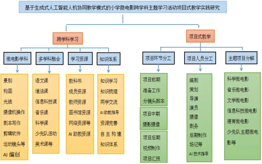 我校的数字化课程微电影学科建设、北京市人工智能试点校建设、区级“数智学习项目”,人工智能、微电影相关的课题、论文、课例、研究成果,通过课题研究克服将先进的AI技术有效融入小学教育环境的挑战,以落实核心素养为目标,以国家课程分科为基础,以人工智能技术为抓手,以多向“联结”为主线,“AI智能融汇”跨学科综合实践活动课程从单一课型逐渐形成课程体系,将人工智能赋能教、学、评各个环节,把人工智能技术深入到教育教学和管理全过程、全环节。