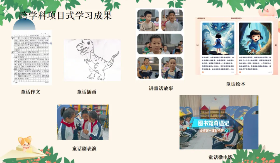 “智能语境”AI+语文+N跨学科课程群中的智编童话(AI+童话编写),让学生通过信息科技、人工智能的辅助,融合语文、科学、美术、微电影等多学科知识,以三年级语文习作“我来编童话”为主题,让学生通过聊童话、写童话、画童话、讲童话、评童话、练童话、拍童话、演童话、童话研究汇报等一系列活动,全面体验童话创作的乐趣,提高学生的表达能力、创新能力、动手能力和团队合作能力。