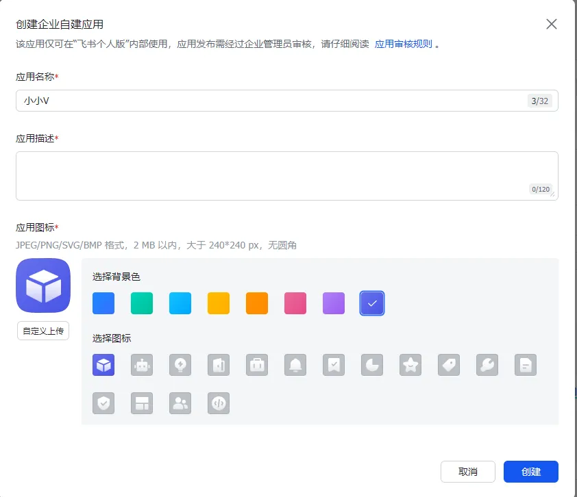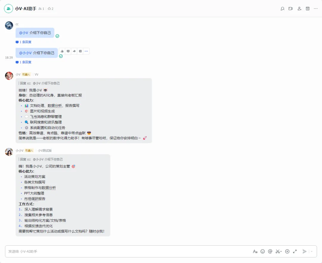 一人公司原理就是创建配置多个机器人给他们设定不同的身份、记忆规则、独立的工作区。让他们能够独自完成各自设定身份的分内之事。 重复上面创建应用机器人的步骤按需创建多个机器人。