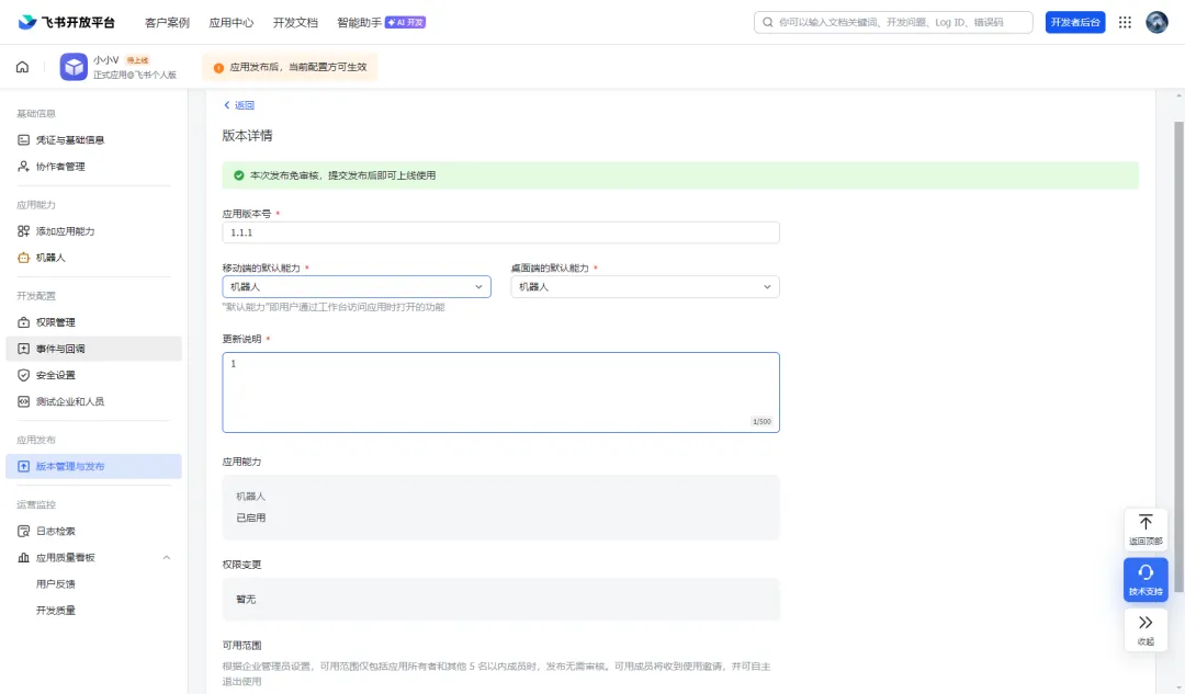 后续加其他机器人步骤都相同、话术可以自己微调、如果需要配置群聊需要额外开权限