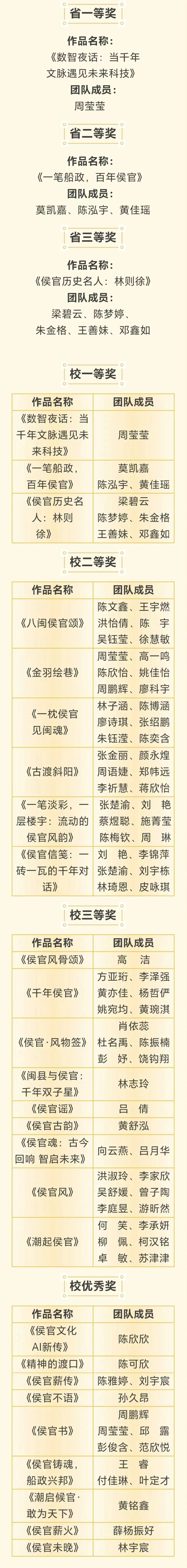 祝贺所有获奖团队!未来,期待更多同学用AI创意赋能文化传承,让千年侯官在数字时代绽放更耀眼的光芒!
