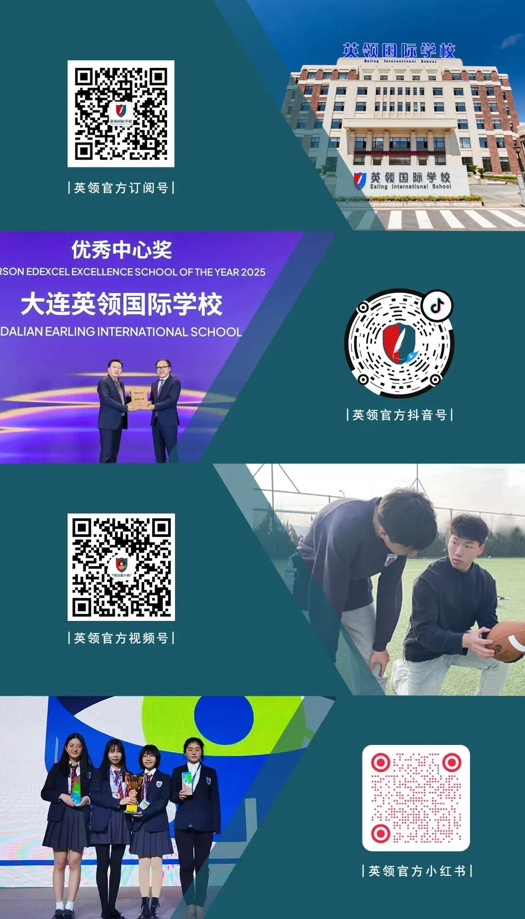 大连英领国际学校成立于2010年3月,注重学生全面发展,培养具有中国文化国际视野的新青年。学校是大连市委统战部授予的“海归驿站”,大连市华侨国际文化交流基地,致力于增强海外侨胞特别是华裔青少年对祖国文化的认同感。同时,英领连续七年助力达沃斯世界经济论坛,是达沃斯青年志愿者培训服务合作单位。