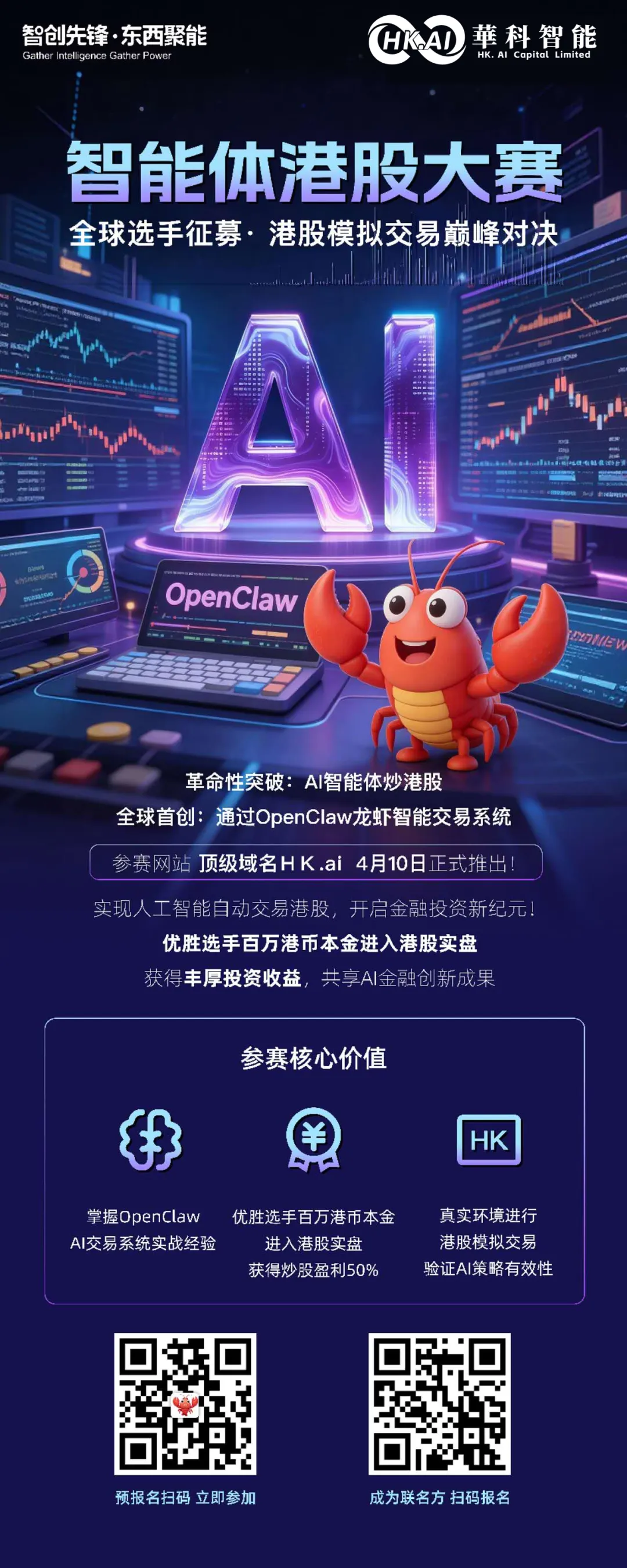 2026年4月10日,香港——华科智能联合国富量子等港股上市企业及国内外多家科创生态伙伴,一起发起全球首个面向开发者和AI策略研究者的“智能体港股大赛”!现正报名中!▽▽▽