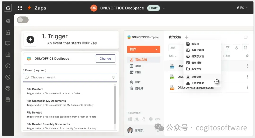 无需编写任何代码,即可将 ONLYOFFICE 协作空间连接到您团队使用的应用程序