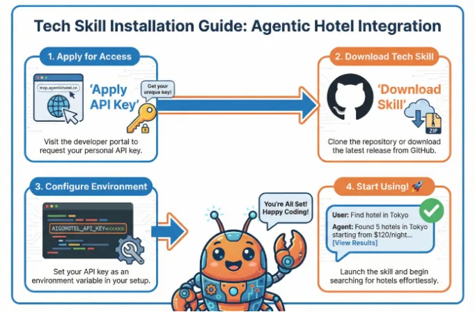 1.API Key 申请:首先前往 mcp.agentichotel.cn/apply 免费申请一个 API Key,3分钟后邮箱自动发送,请注意查收。
