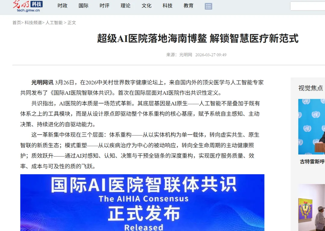 光明网:超级AI医院落地海南博鳌 解锁智慧医疗新范式