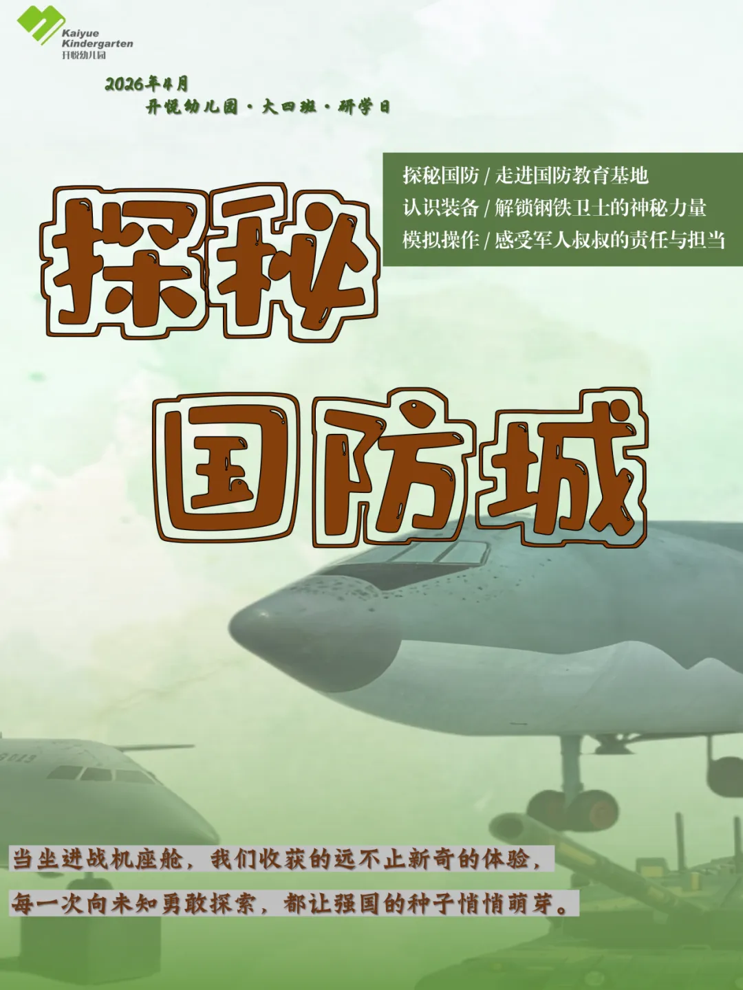 AI家园社课程|园企融合研学活动第十九期——大四班《探秘国防城》儿童·悦成长:开心宝贝 悦享成长教师·悦成长:开心教育 悦享生活家长·悦成长:开心育儿 悦享幸福编辑|李昱昕 汪美玉一审|李 聪二审|傅凯懿三审|张叶叶
