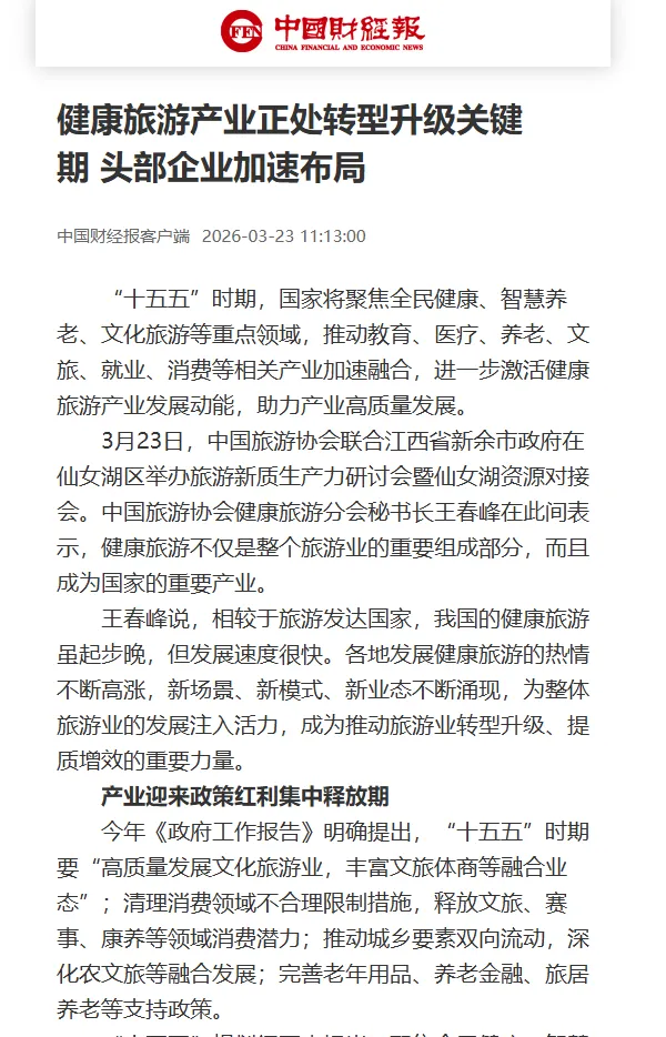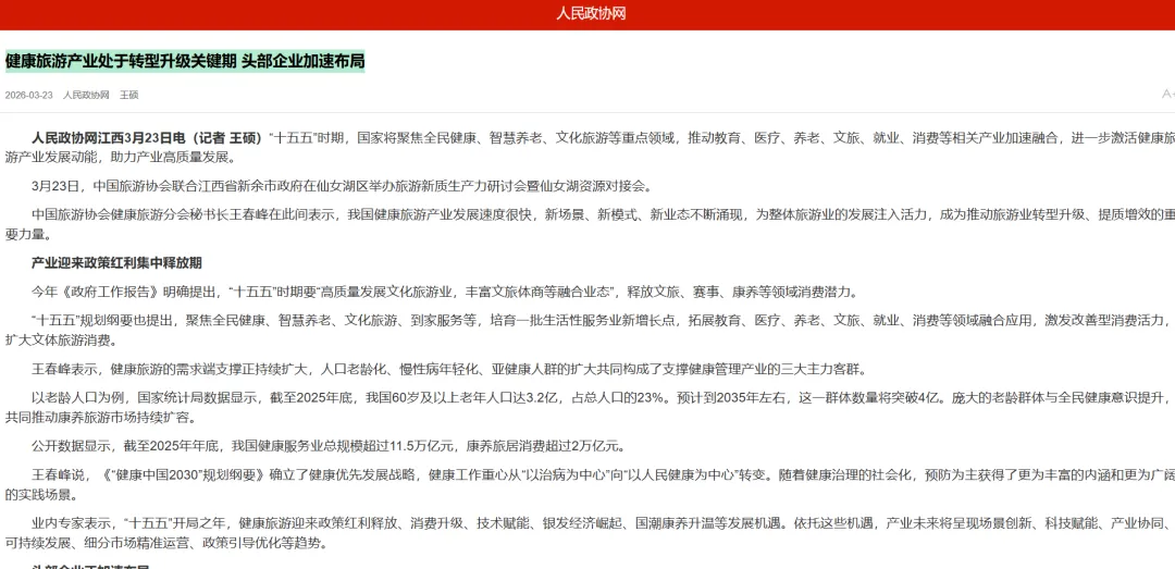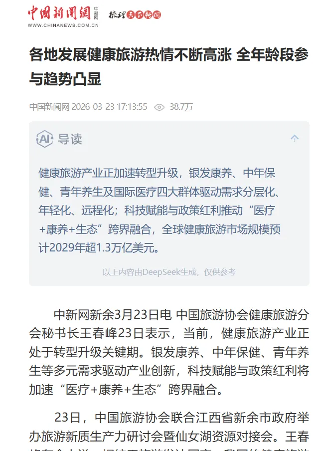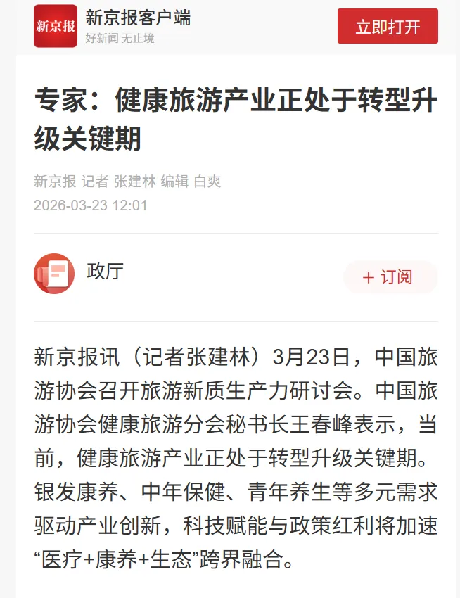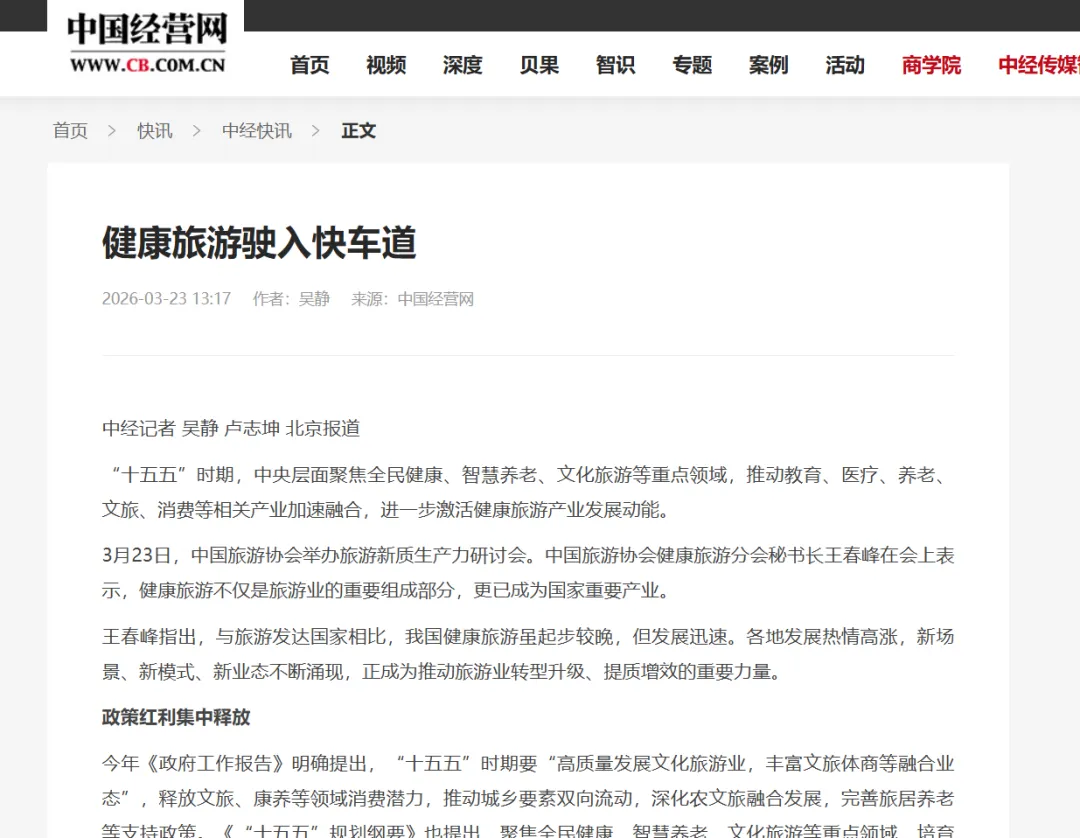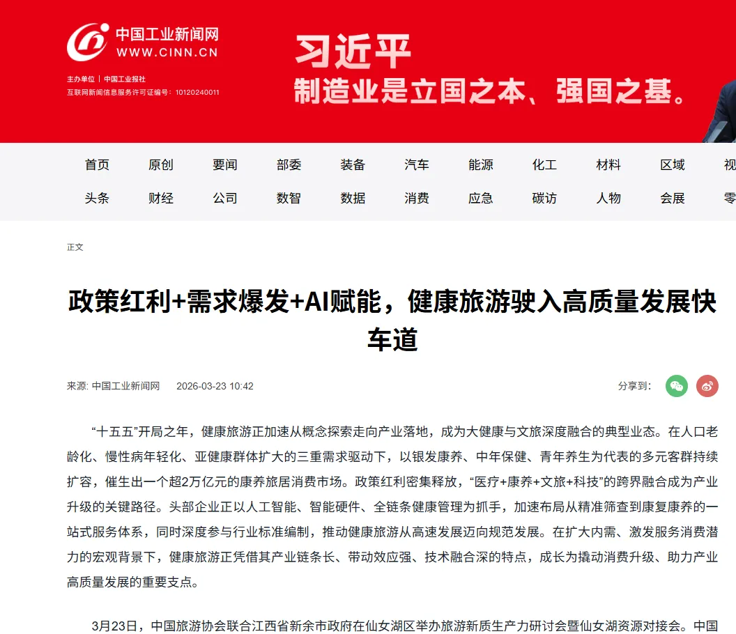 中国工业新闻网:政策红利+需求爆发+AI赋能,健康旅游驶入高质量发展快车道