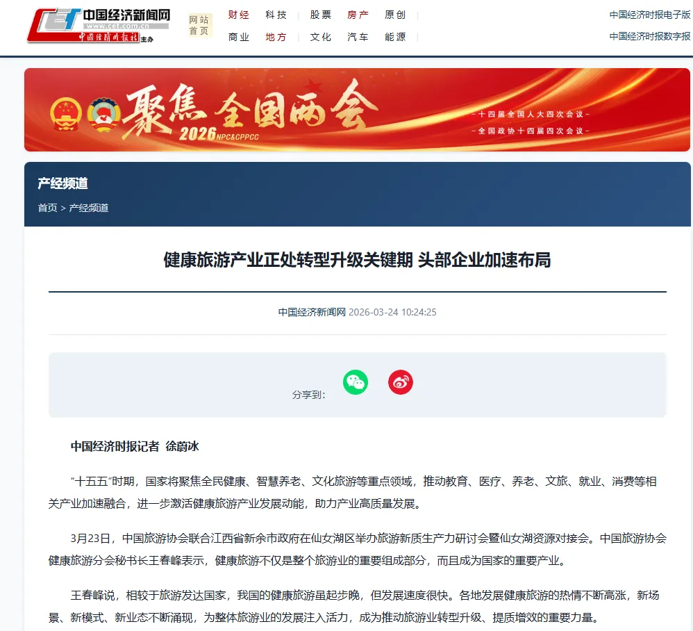 中国经济新闻网:健康旅游产业正处转型升级关键期 头部企业加速布局