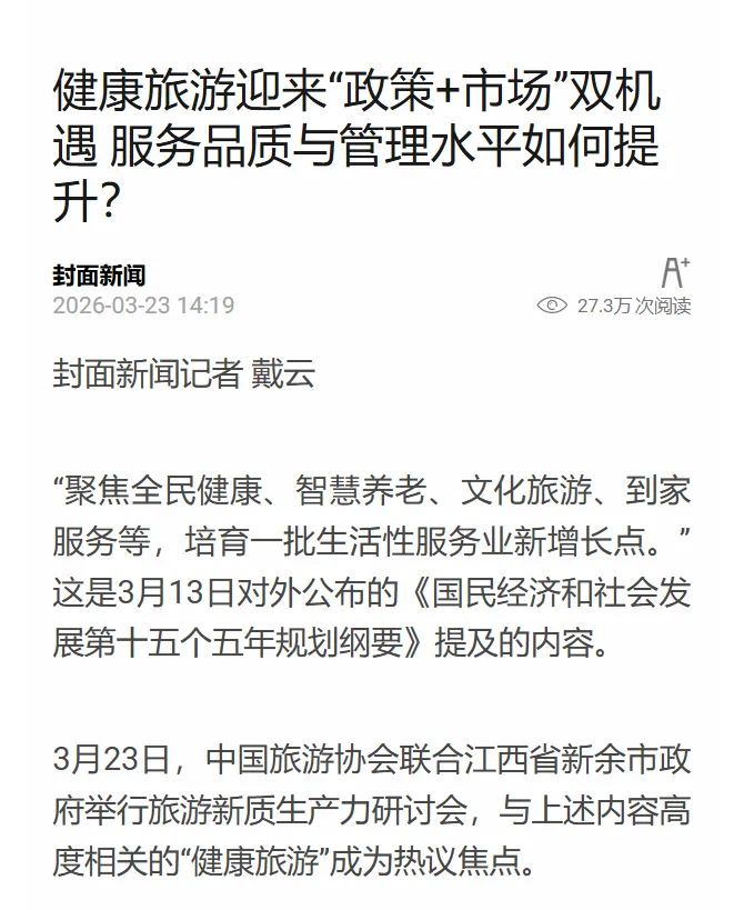 封面新闻:健康旅游迎来“政策+市场”双机遇 服务品质与管理水平如何提升?