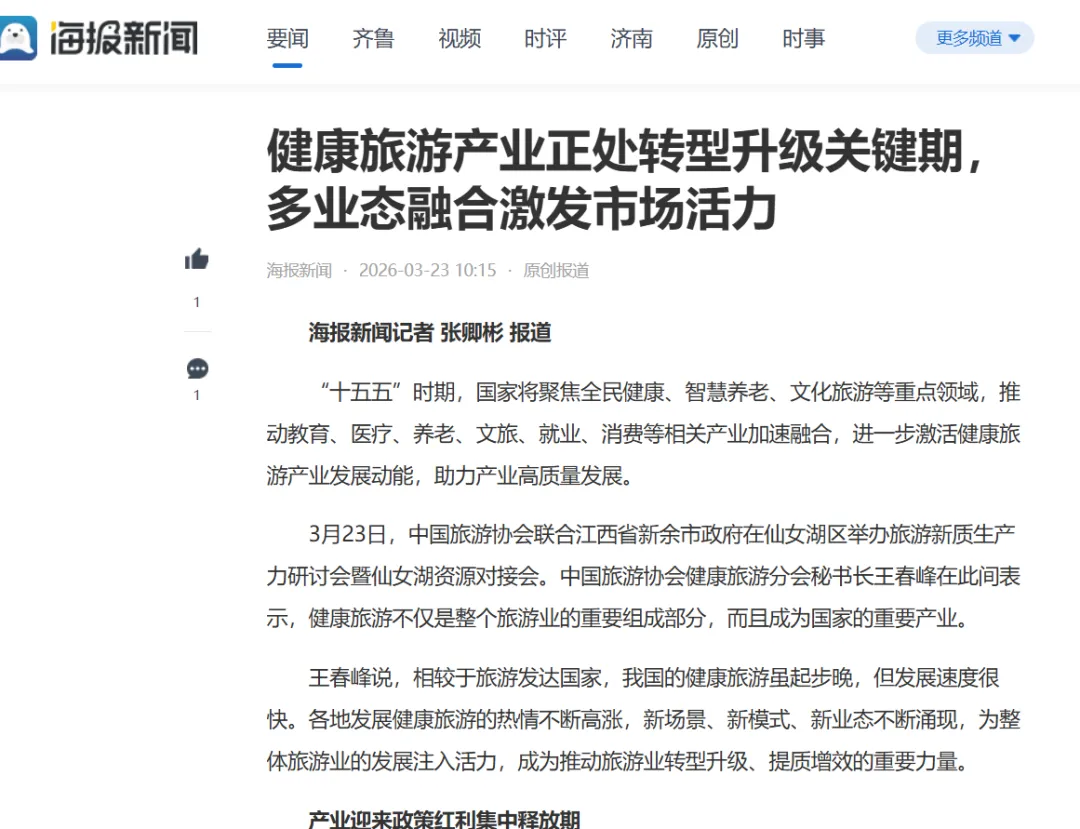 海报新闻:健康旅游产业正处转型升级关键期,多业态融合激发市场活力