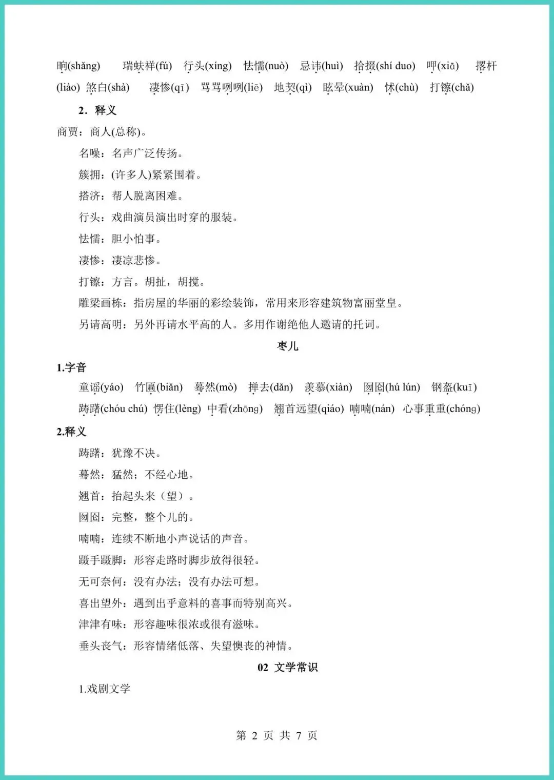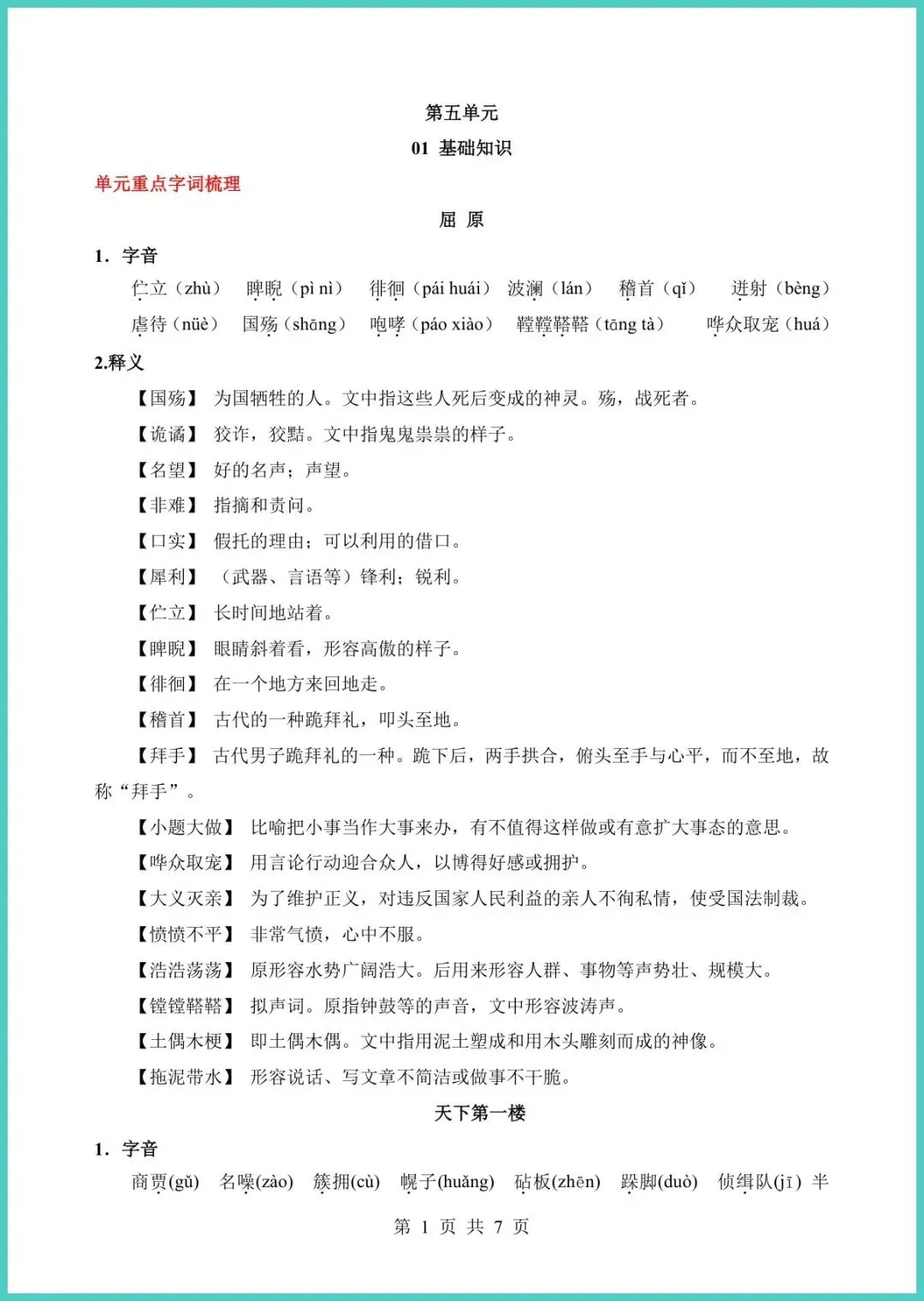 2026春统编版九年级下册语文第五单元知识清单,7页精华浓缩,电子版一键可打印!这份清单把《孔乙己》《变色龙》等课文的重点字词、文学常识、主题归纳、写作手法、易错题型全部梳理成表,搭配思维导图高分答题模板,孩子晨读5分钟就能背要点,晚自习10分钟做完自检,阅读理解提分肉眼可见!期末冲刺别翻厚书,直接看它就够!需要的家长赶紧打印,让孩子睡前练一页,考场多拿10分!