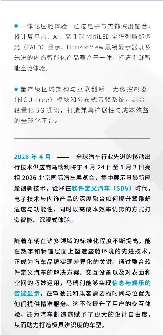 马瑞利面向软件定义汽车的下一代智能座舱创新技术亮相2026北京车展