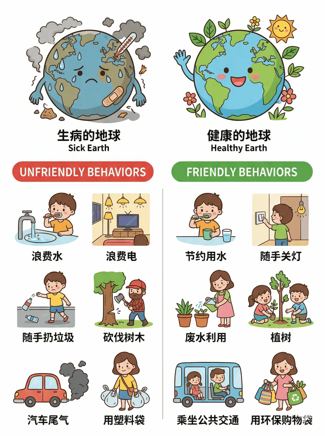 🌟 每一页都干货满满,画风也是小朋友最喜欢的卡通手绘风🎨!建议宝妈、幼教老师们直接打印出来,带着宝宝一起学、做、玩!地球是我们唯一的家园,保护地球从娃娃抓起~