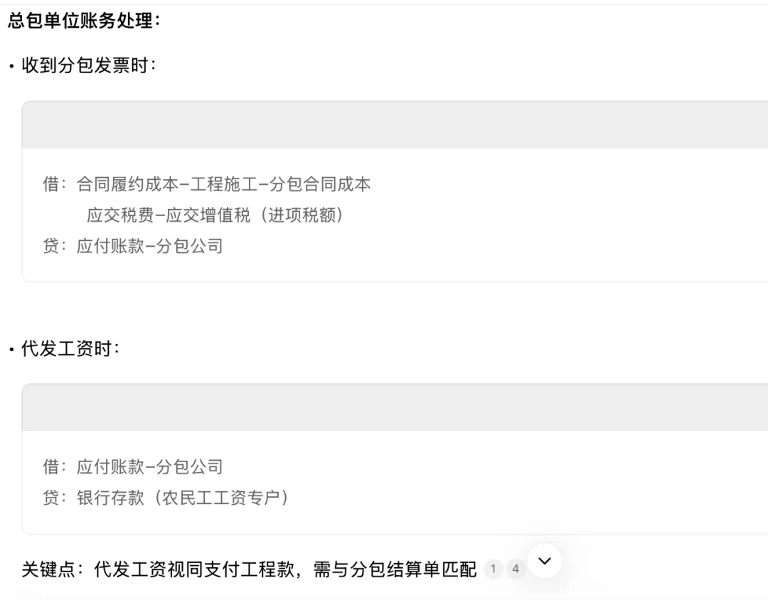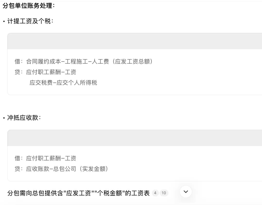 进项税抵扣冲突:代发工资作为工程款的一部分,分包应开具建筑服务发票(含进项税),但个税重复申报导致成本核算混乱