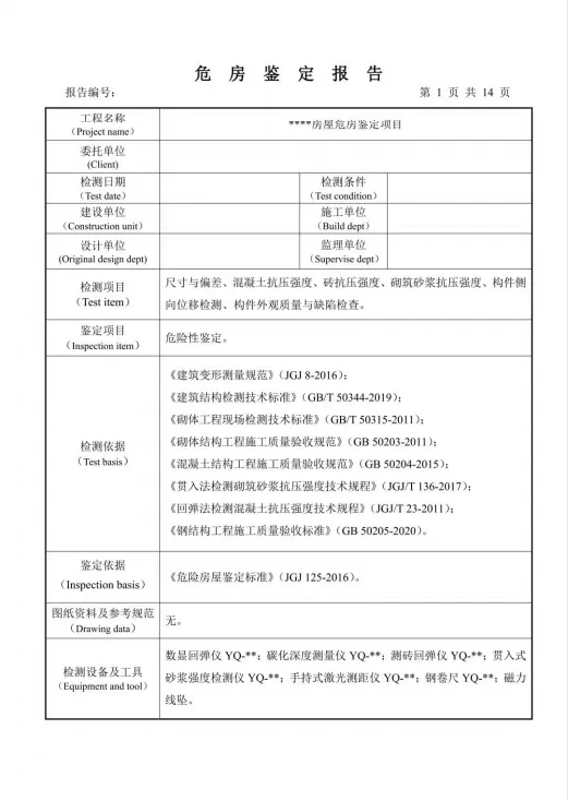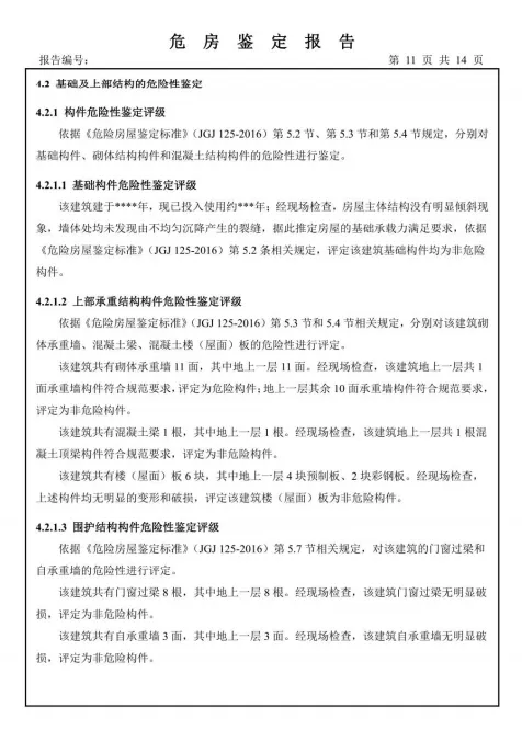 为什么用着好好的房子,一鉴定就是“危房”?这片文章已经说过为什么要用危险性鉴定标准。危房鉴定报告内容如下: