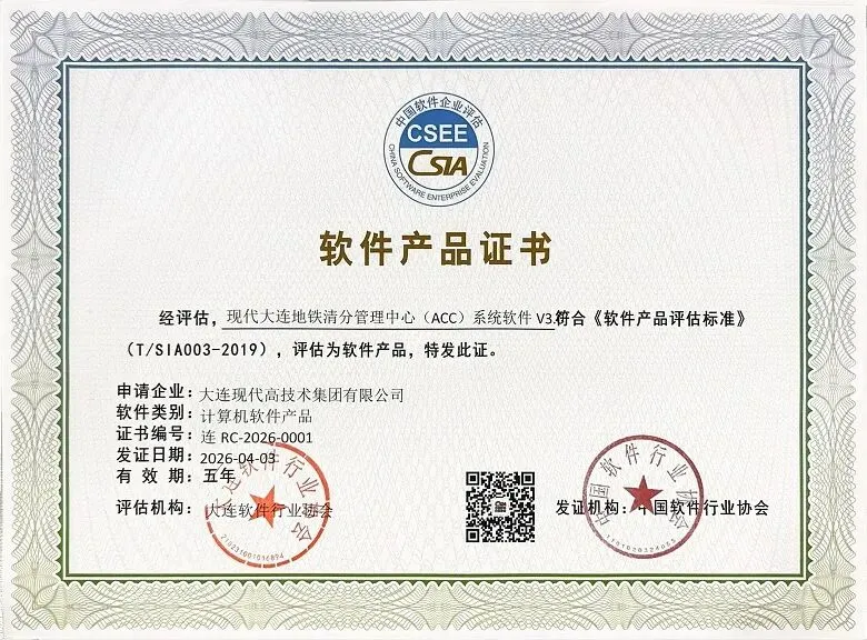 现代大连地铁清分管理中心(ACC)系统软件V3.0 | 大连现代高技术集团有限公司 | |