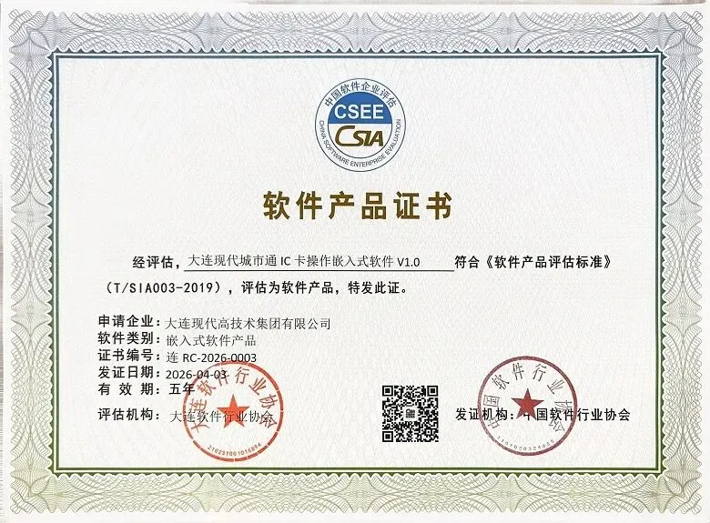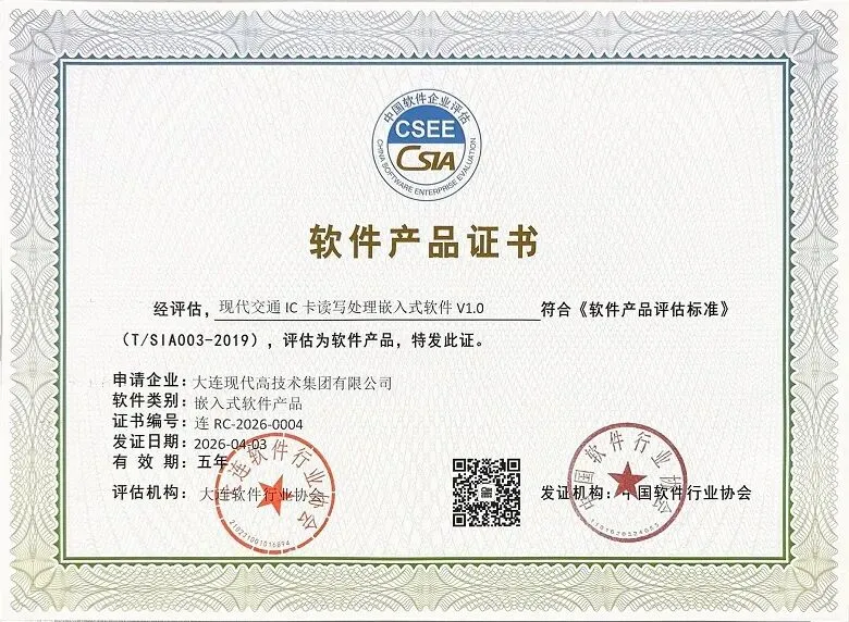 现代交通IC卡读写处理嵌入式软件V1.0 | 大连现代高技术集团有限公司 |