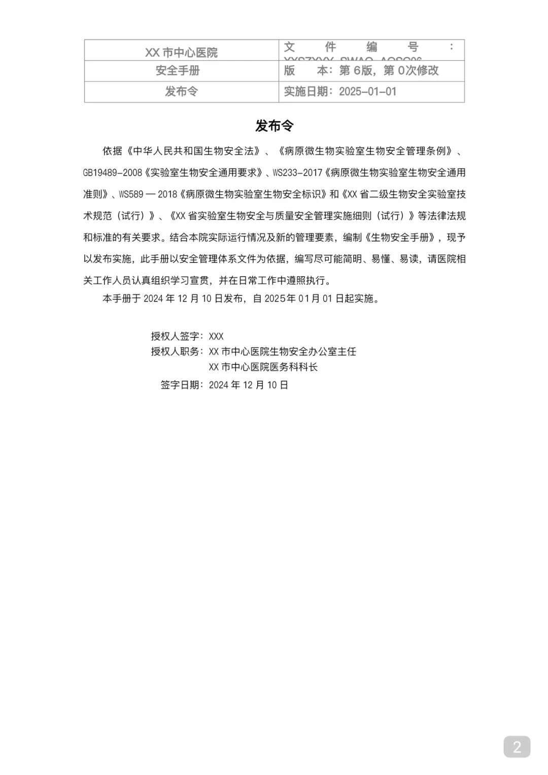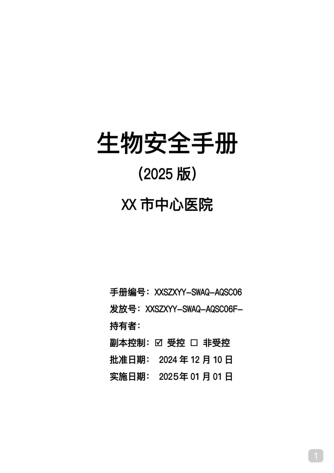 为规范病理科/检验科实验室生物安全管理,有效预防和控制实验室生物危害,保障医务人员、患者及公众健康,维护实验室正常工作秩序,依据国家相关法律法规及技术规范,结合本科室实际工作,制定本生物安全手册。全体工作人员须严格遵照执行,落实安全责任,筑牢生物安全防线。转发本文至朋友圈置顶保留一天,领word版模版请➕V18610962290