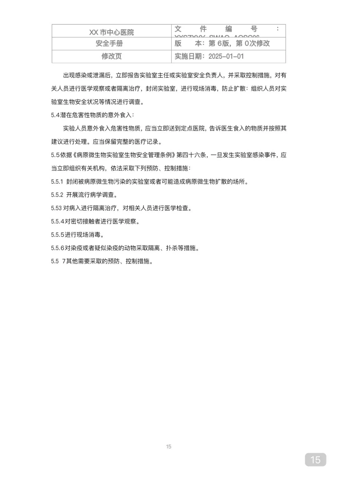 • 控制措施:物理隔离、个人防护、消毒、操作规范