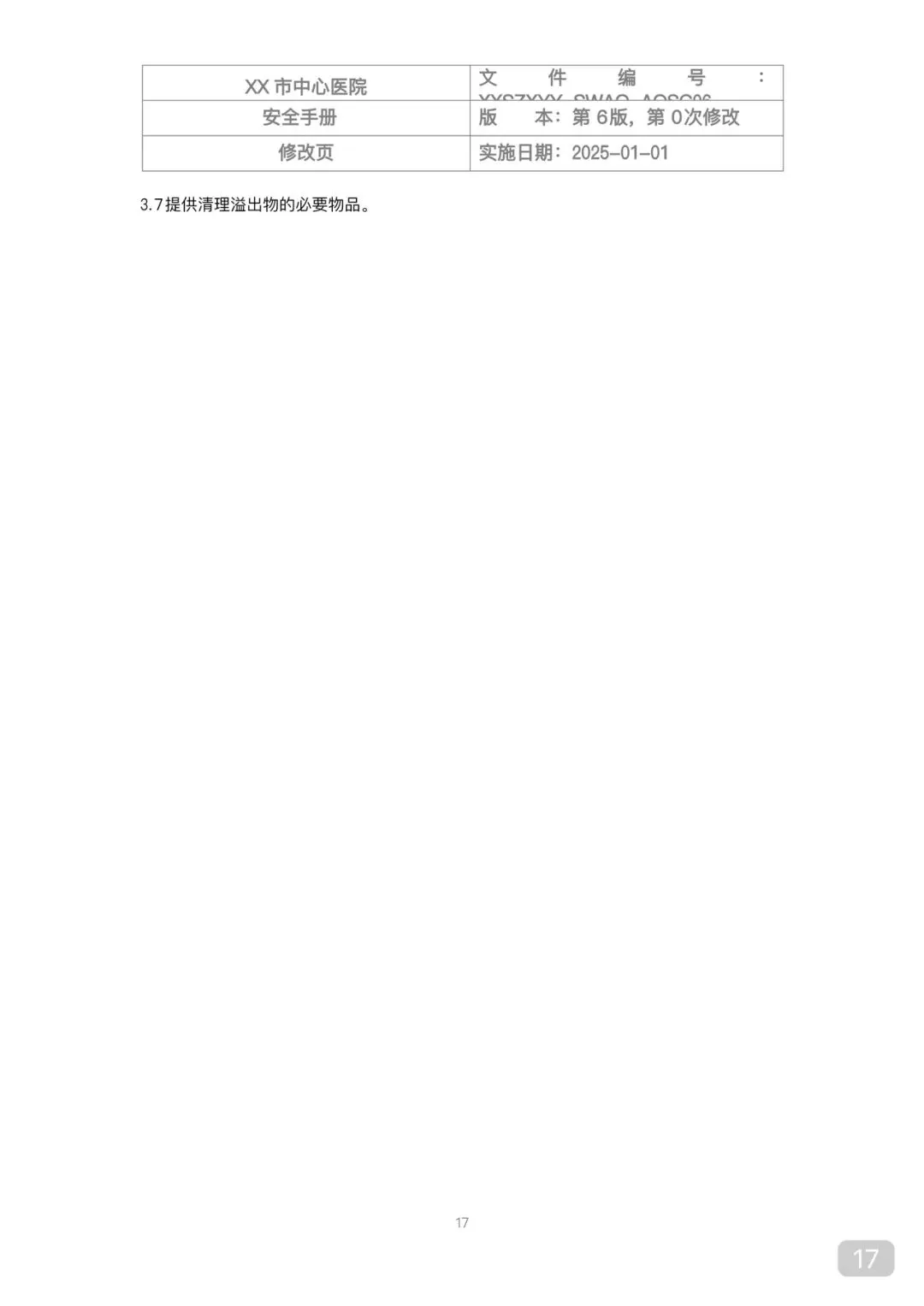 • 方针目标:预防感染、防止泄漏、全员培训、持续改进
