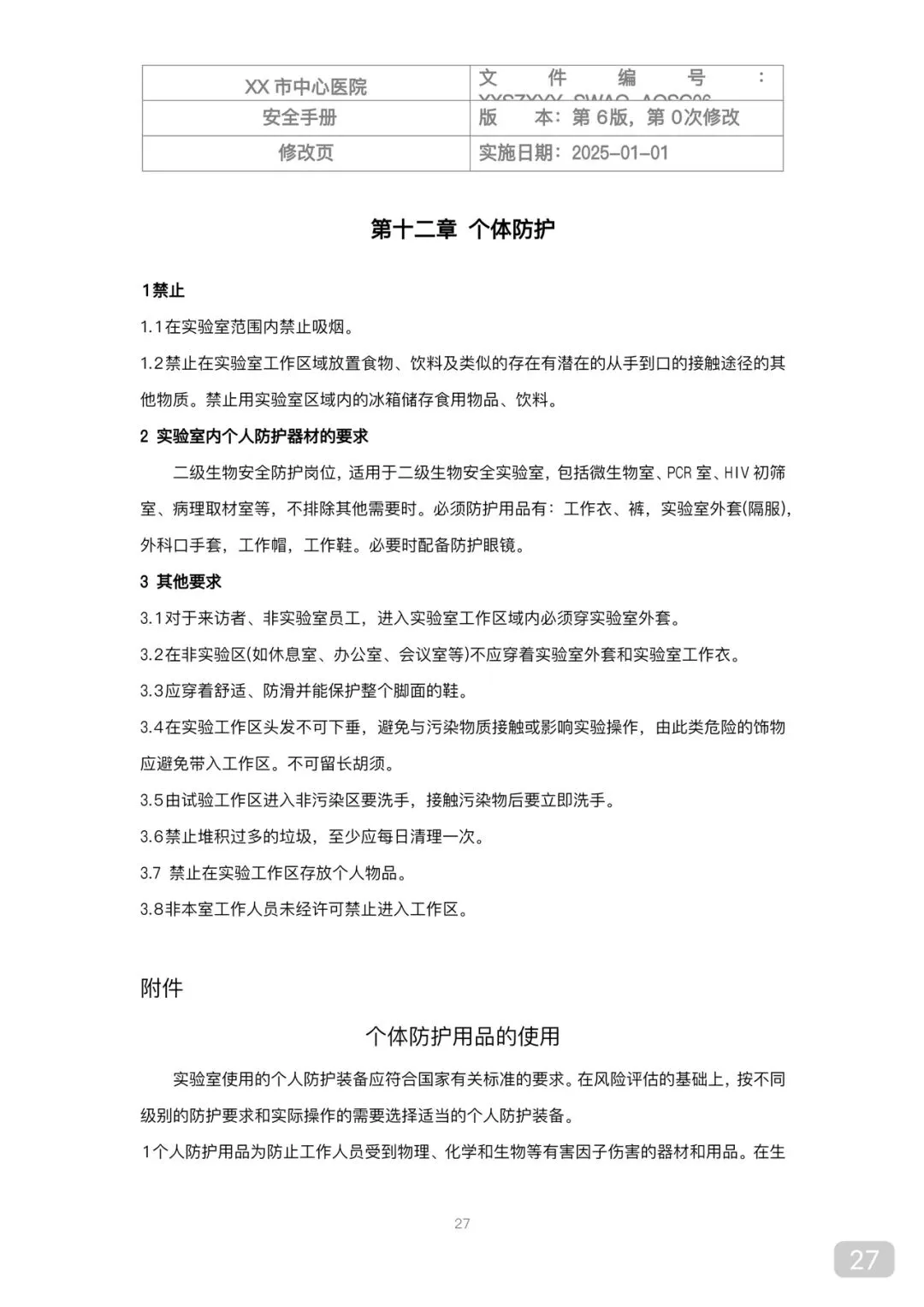 • 适用范围:全体人员、进修生、实习生、保洁、维修人员