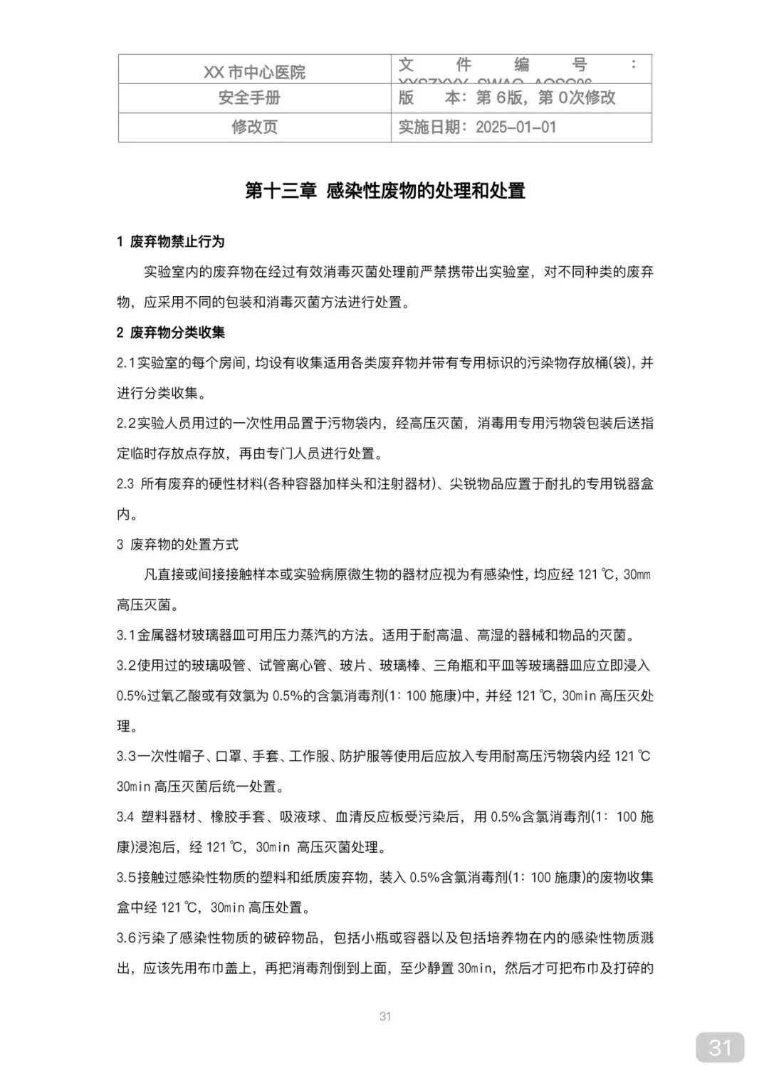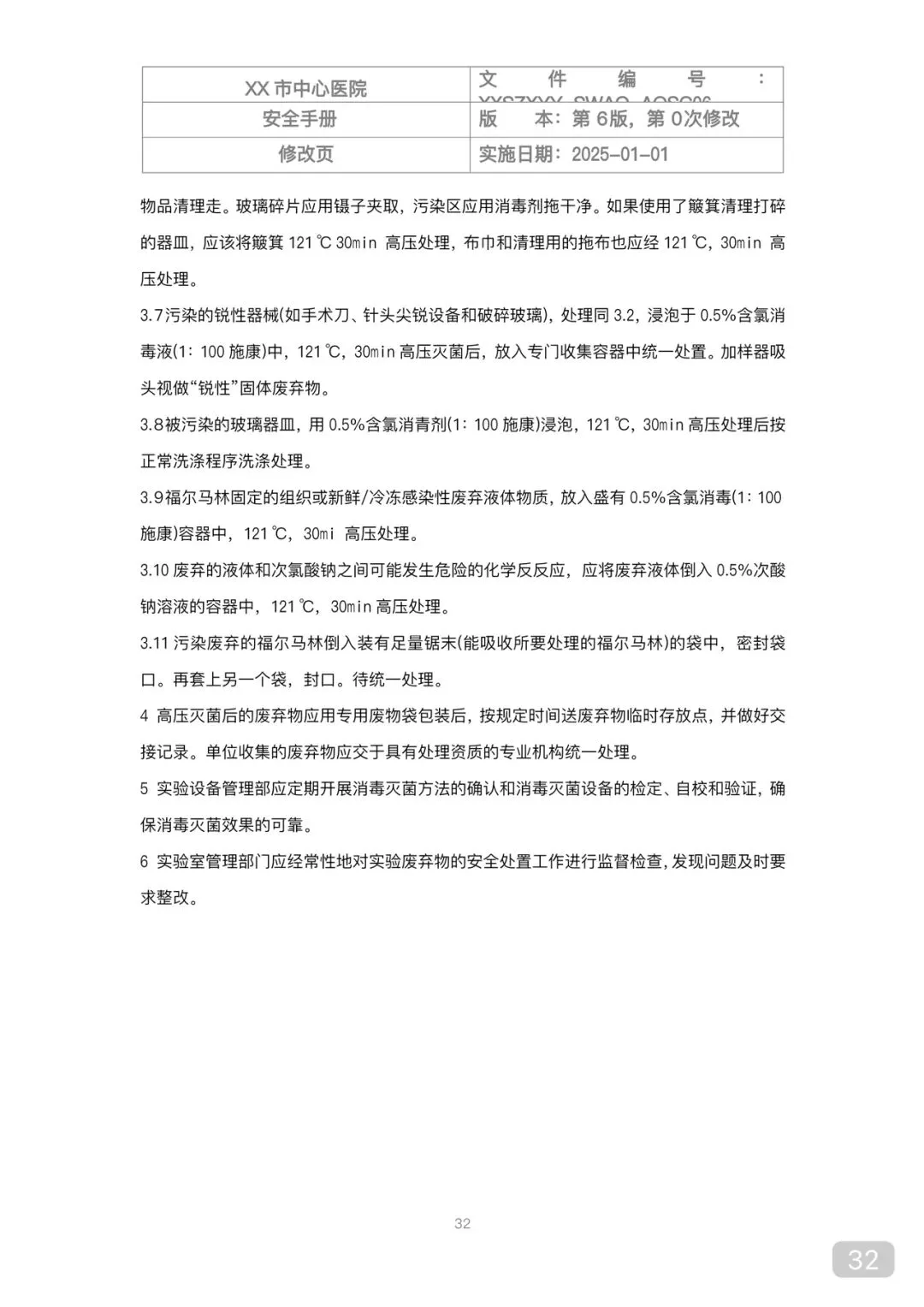 • 病理组织固定后按病理性废物处置,严禁随意丢弃