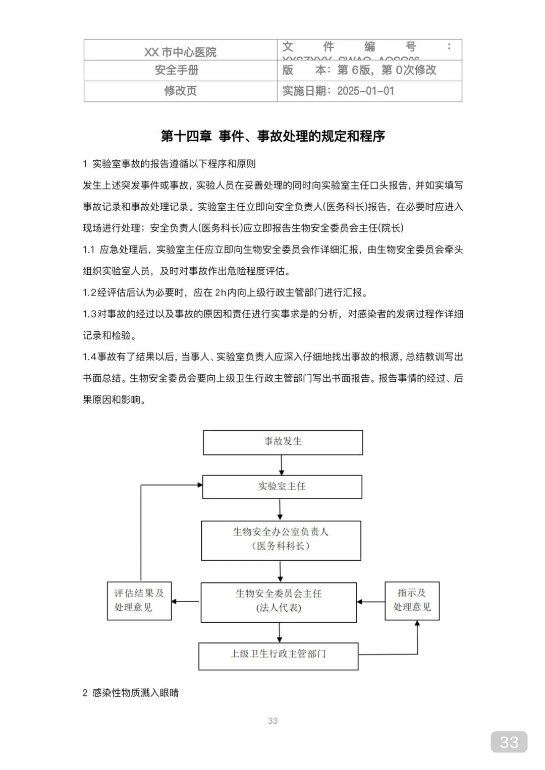 • 针刺/锐器伤:立即处理→填写暴露登记表→上报院感→评估→预防性用药(如HIV、乙肝)