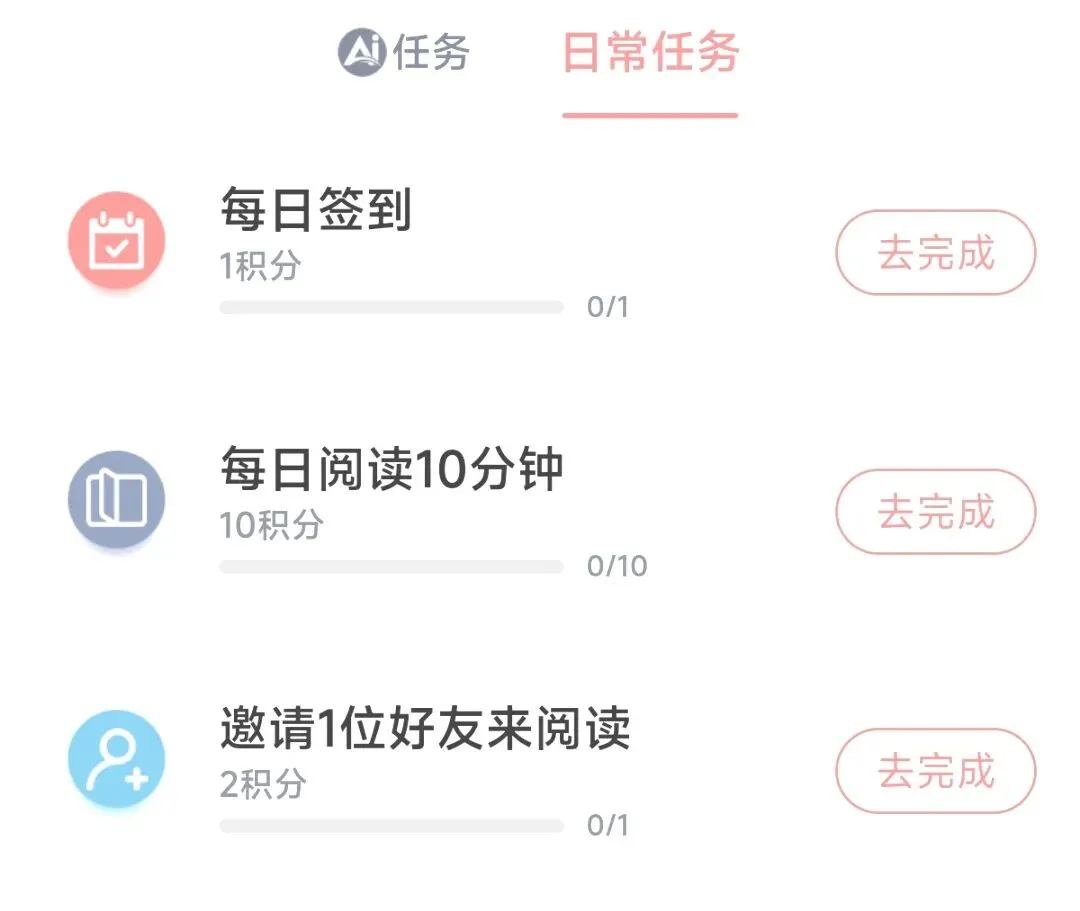 (2)日常任务:每日签到打卡(1分),每日阅读10分钟(10分),邀请一位好友来读书(2分)(每日阅读不足10分钟不计分。)
