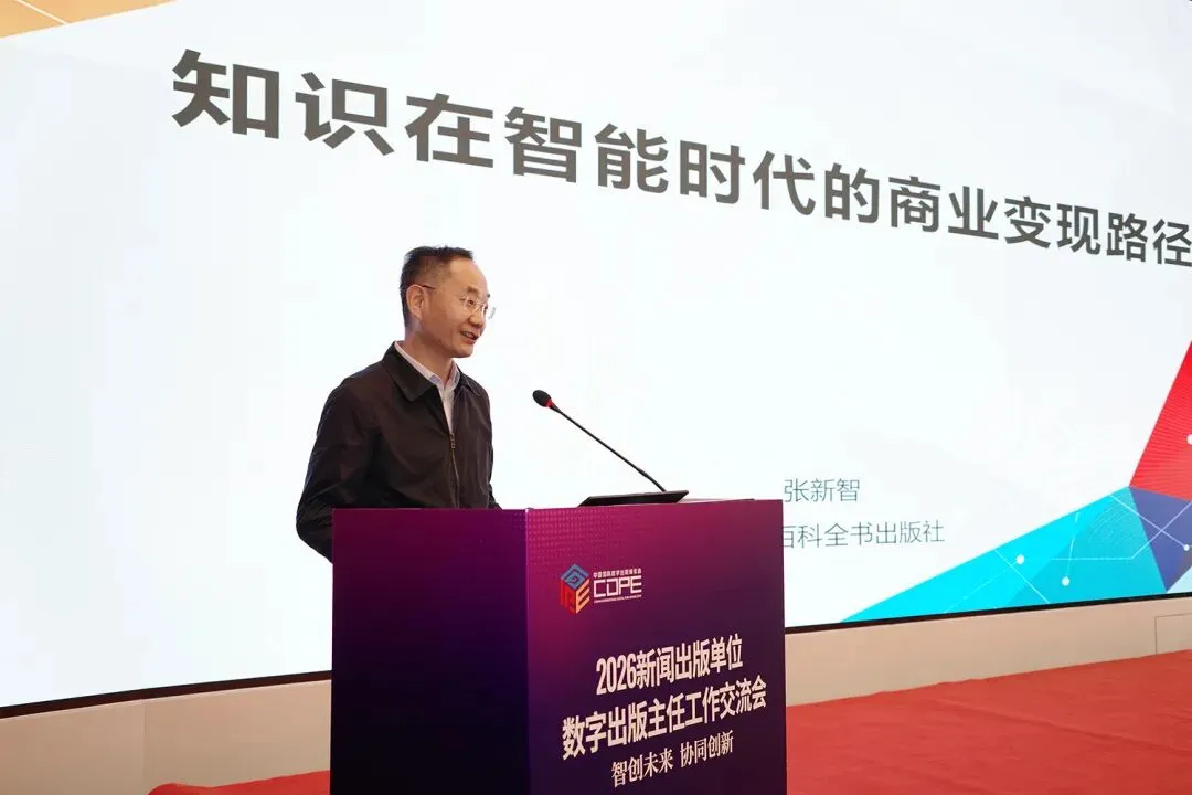 百科社新媒体中心主任张新智在2026新闻出版单位数字出版主任工作交流会上发表主旨演讲