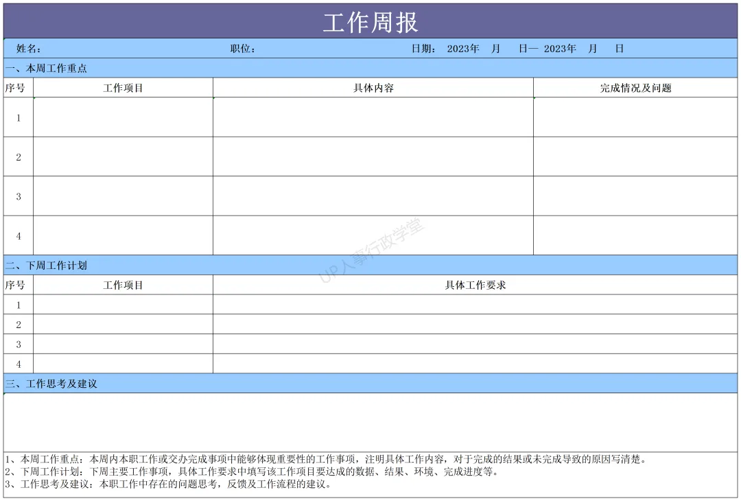获取方式见文末。文件夹位置:人事行政表单—040 行政人事周报