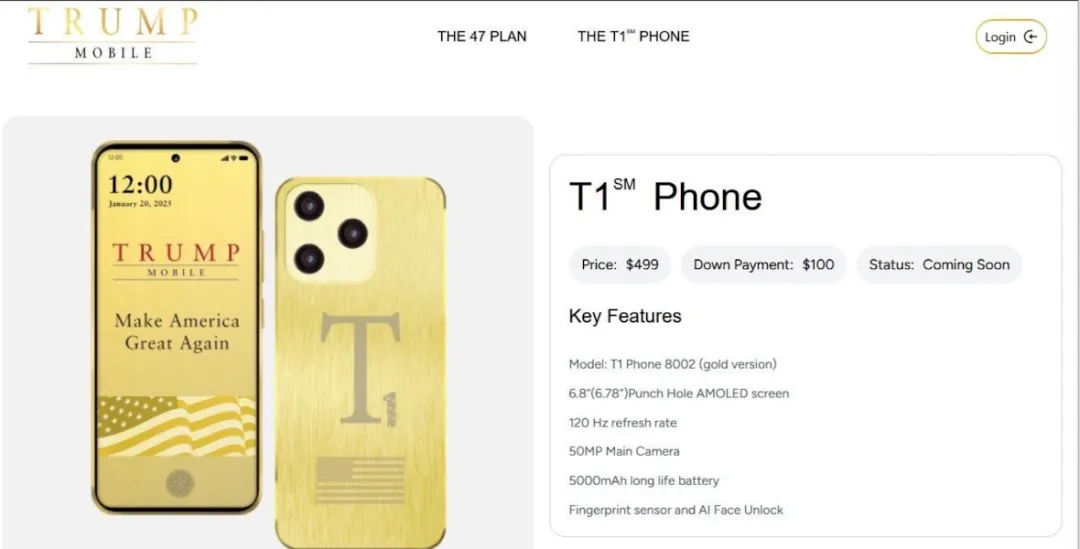 5. 特朗普手机 T1 定型,官网完成改版