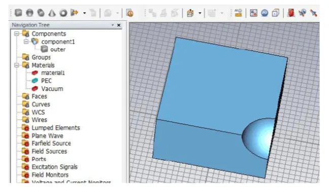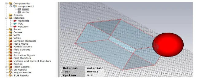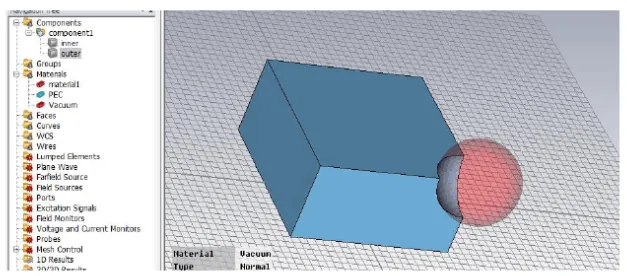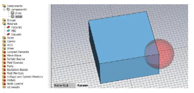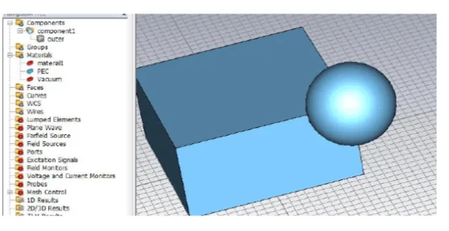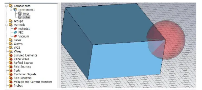 把highlighted球插入长方体中,交叠部分被球代替。效果如下。当整个球包含在长方体中时可以得到多层介质的效果。
