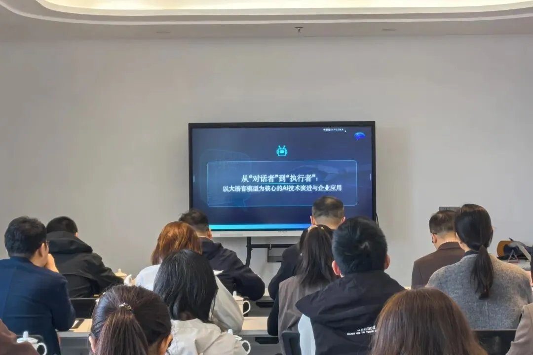 本次培训特邀通用决策智能研究所产品经理陈毅军作专题授课。他以“从‘对话者’到‘执行者’:以大语言模型为核心的AI技术演进与企业应用”为主题,从AI技术原理、发展历程、典型案例及在企业服务、政务服务、风险预警等方面的实践进行了系统讲解,帮助代表们在更好运用数字化手段服务企业发展方面进一步开拓思路。