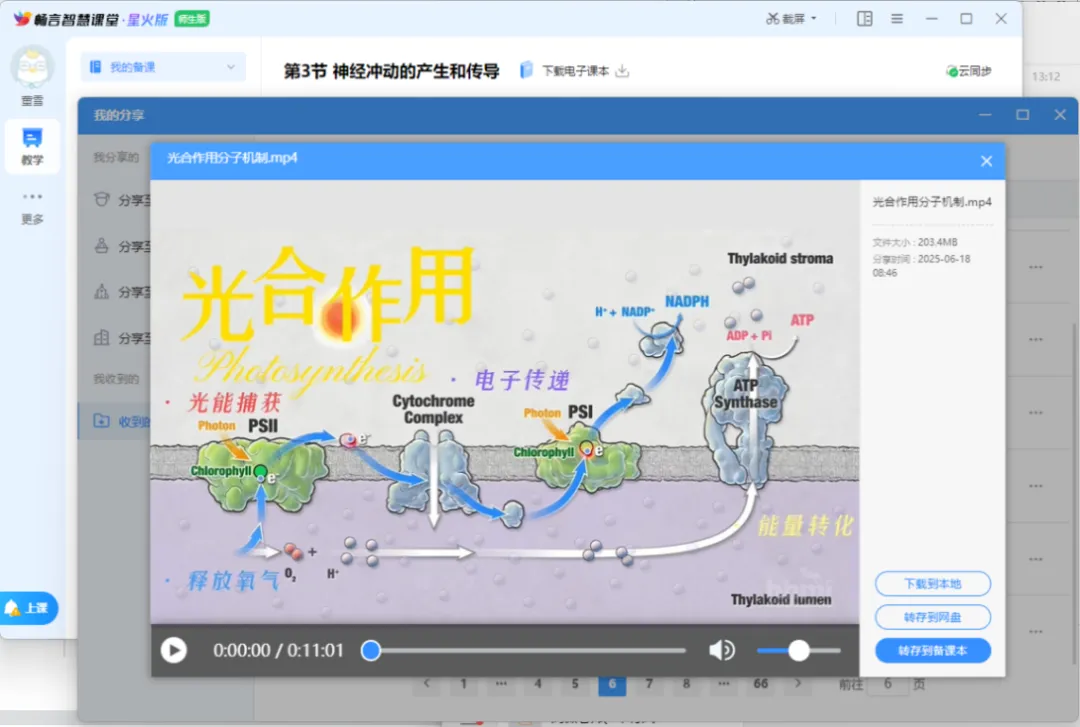 PPT、3D模型(如“DNA双螺旋结构”动态演示、减数分裂过程演示)、微课视频(如“光合作用的分子机理”分步解析)等学习资源实时推送至学生端,进行预习与理解分析。