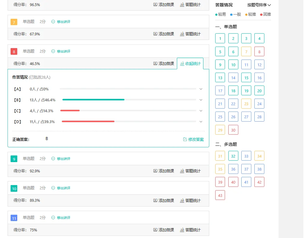 通过OCR技术识别手写答题卡,结合 DeepSeek 算法实现实验设计题等主观题的自动批改,并关联配套错题解析视频,可节省教师50%以上的机械性工作时间,同时让学生在作业完成上传后,第一时间掌握自身答题正确率等情况,便于及时改错巩固、查漏补缺。