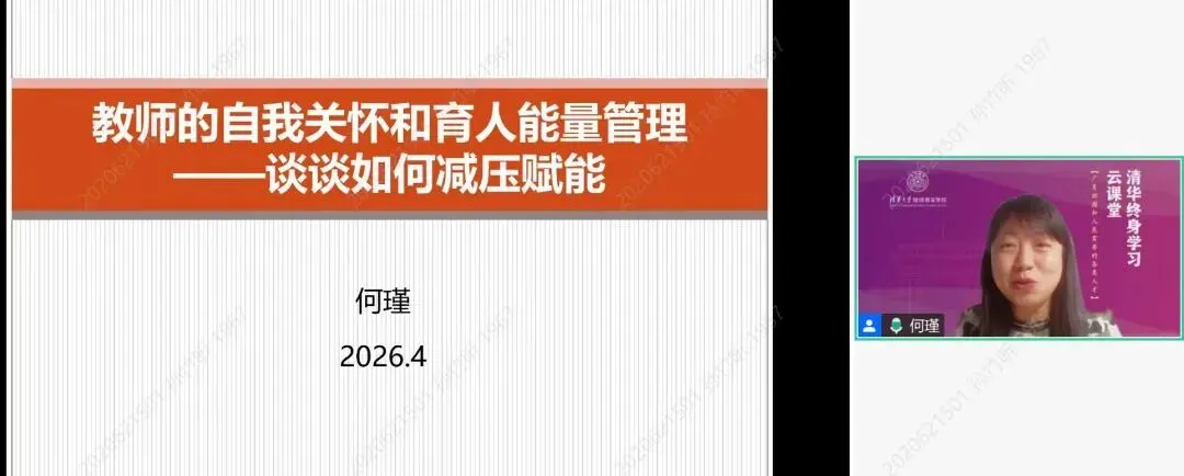 何瑾博士的讲座,让我完成了一次向内的审视与疗愈。日常工作中,我们常常全身心投入班级管理与学生教育,却忽视了自身的心理状态与能量补给。课程清晰剖析了教师职业倦怠的发展轨迹,也让我读懂了身边教师群体的身心困境。温暖的人际关系、正向的自我关照,是抵御内耗、积蓄力量的关键。依托幸福素养模型,我学到了情绪调节、思维重塑、滋养身心的实用方法。教育从来不是单向的消耗,只有学会接纳自我、合理减负、搭建情感支撑,守住身心边界,才能告别情绪耗竭。未来,我会重视自我关怀,持续储备育人能量,以平和且丰盈的状态深耕教育,带着温暖与热爱,从容前行。
