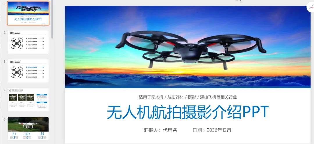 本文分享的是【36套无人机PPT模板】
