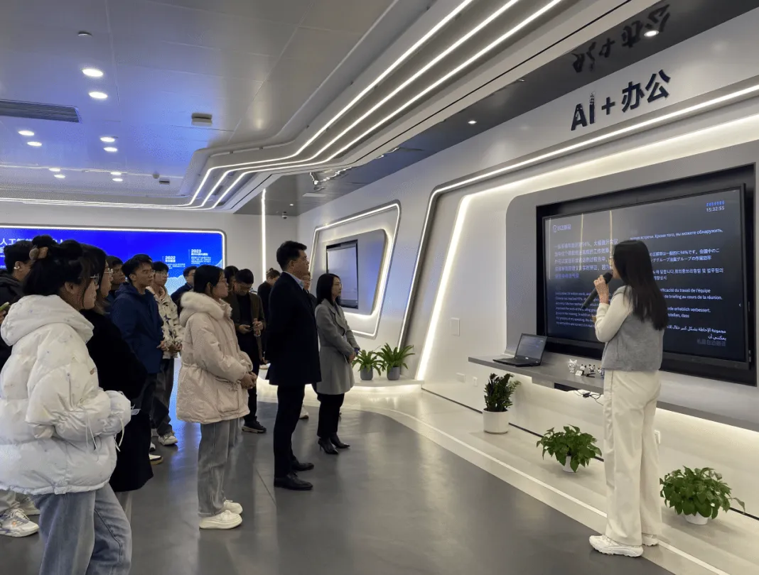 工作人员重点讲解了科大讯飞在AI教育、工业和医疗等领域的实际应用,展示了AI技术如何推动行业变革并创造新的就业岗位。通过这些介绍,学生们对人工智能的行业应用有了更加清晰的认识,并对AI技术带来的职业机会充满期待。参观过程中,师生们还参观了科大讯飞的办公区域,感受到了现代化的办公环境和灵活开放的工作氛围。