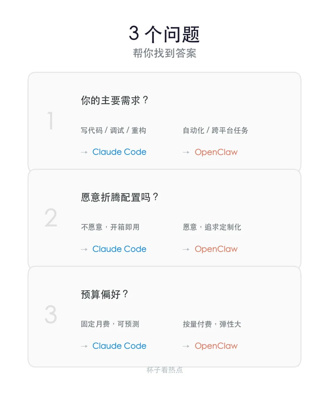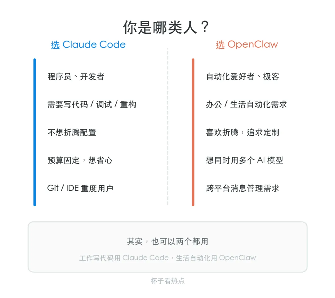 如果你预算固定、想省心,选Claude Code。如果你想精细控制成本、能承受波动,选OpenClaw。