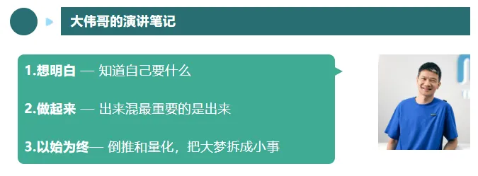 找到热爱的事并立刻行动后,还需用"倒推与量化"对抗对不确定性的恐惧——就像高考进交大、四年毕业这些难题能被完成,是因为目标清晰、任务可拆解;人生虽无标准答案,但无论你热爱什么或单纯想要发顶刊、找好工作,都要以终为始:先确定终点,倒推关键步骤,量化到每月每周,进度滞后时自然产生紧迫感,然后立刻去做——这也是我管理米哈游战略时的核心方法,想清楚3年5年后的目标,倒推今天该做什么,缺人就找人、不懂就马上去学,以此对抗焦虑、把事情做成。