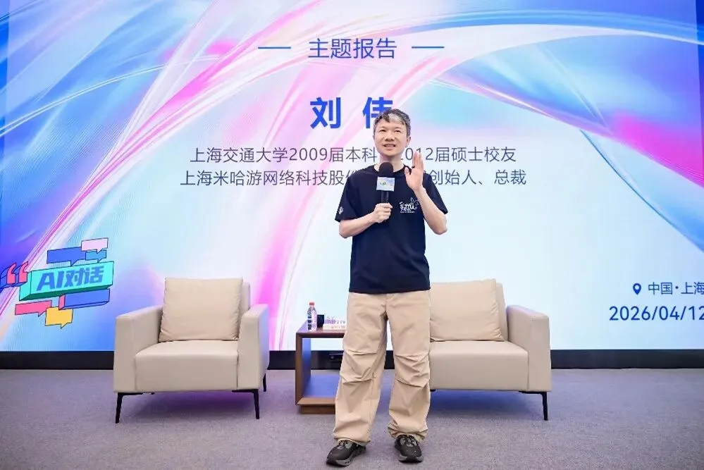 4月12日,2009届本科校友,2012届硕士校友,上海米哈游网络科技股份有限公司创始人、总裁,上海交通大学杰出校友思源贡献功勋奖获得者刘伟重返母校,做客人工智能学院“AI对话”,为师生带来一场兼具深度与温度的分享。人工智能学院党委书记杨一帆主持活动,执行院长王延峰为活动致辞。