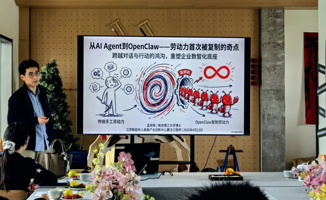 本次沙龙特别邀请到南京理工大学孟祥林博士和弘创咨询创始人陈江良老师担任主讲嘉宾。孟博士现任江苏智能无人装备产业创新中心暨毛明院士工作站技术部算法工程师,他从技术角度出发,深入讲解了OpenClaw大模型的技术原理及应用介绍。陈江良老师作为弘创咨询首席顾问、ICF国际教练联合会PCC专业教练,拥有近三十年管理和咨询经验,结合大量实战案例,聚焦分享制造业AI落地的真实挑战与破局路径。