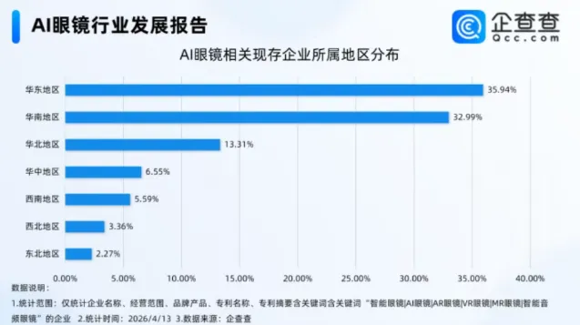 国内AI眼镜产业在区域分布、资本规模和经营年限等方面呈现出独特的发展格局,华东、华南地区的产业集聚效应、雄厚的资本实力以及老牌企业的主导地位,共同构成了行业发展的坚实基础。