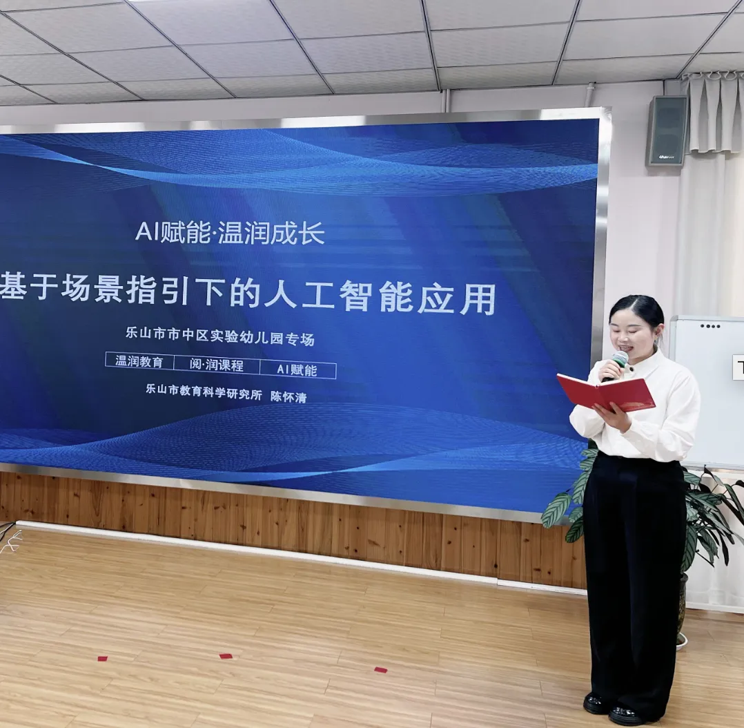 在人工智能飞速发展的时代背景下,更新教育理念、提升智能技术认知与实践能力,已成为推动幼儿园教育创新与高质量发展的关键。2026 年 4 月 15 日,乐山市市中区实验幼儿园教育集团特邀乐山市教育科学研究所教师发展研究室主任陈怀清入园,开展《AI赋能·温润成长——基于场景指引下的人工智能应用》专题培训,区实幼全体教师共同参与学习,开启 AI 赋能幼教实践的探索之旅。