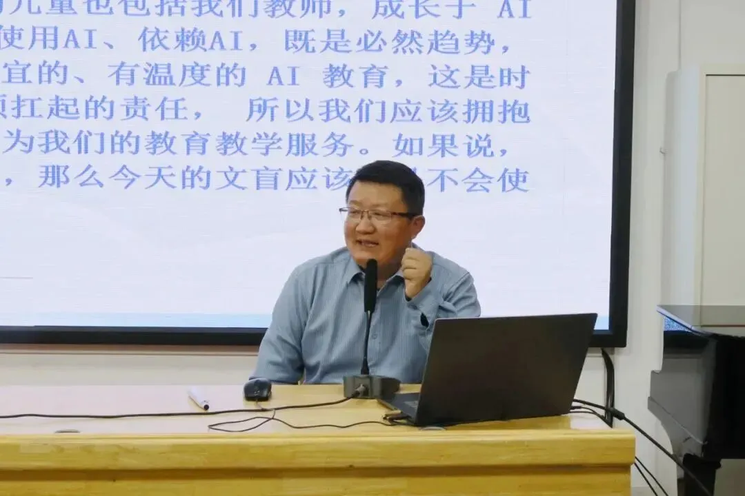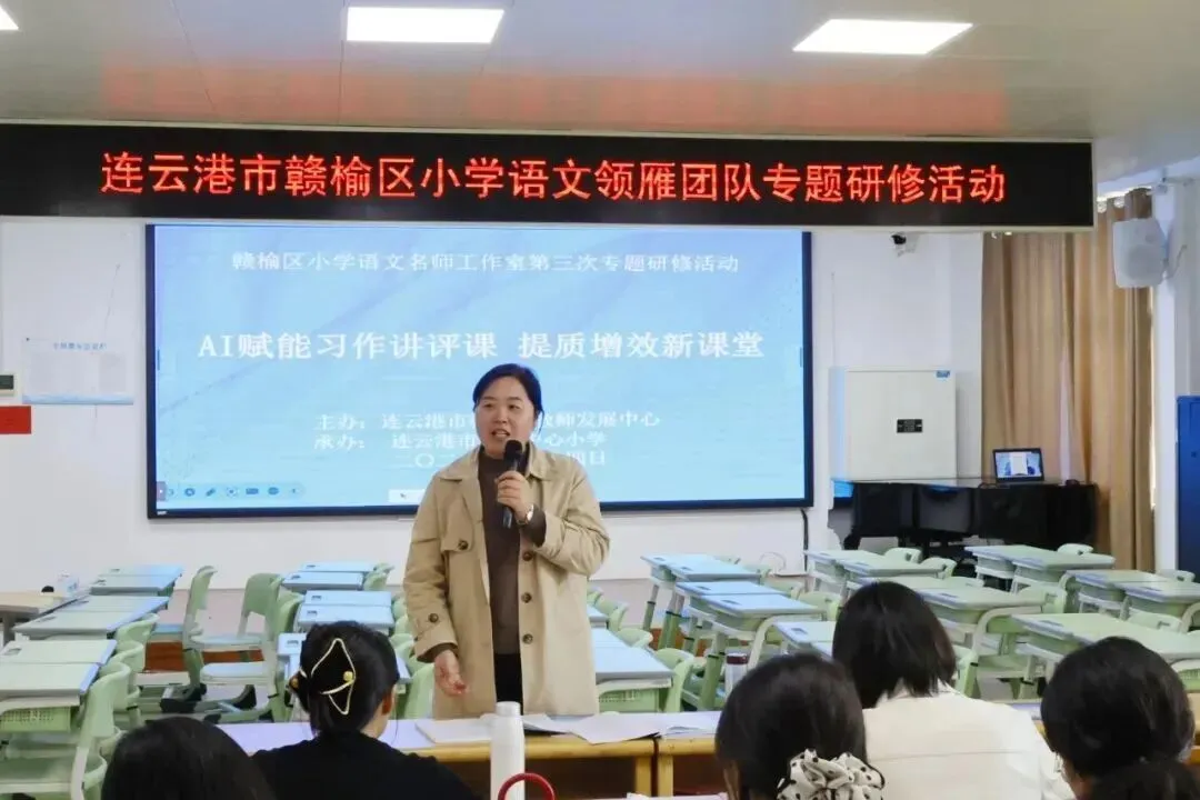 课堂展示结束后,青口小学党总支书记朱红甫带来专题讲座《依托AI智能,精准讲评习作》。